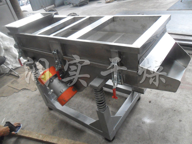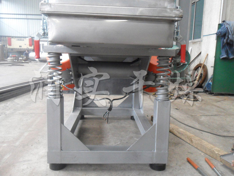 本機上部采用快拆式手柄,把整機連成一個整體,上蓋全密封、有效防止物料在過篩時由于振動而產生粉塵飛揚。篩體下部安裝振動電機,有效保證了物料的結構緊湊,下部采用彈簧減振,使整機在平穩狀態下工作。下面底座采用可調式,可調節正在過篩時的篩面傾斜角度,根據物料特性以取得佳過篩效果。